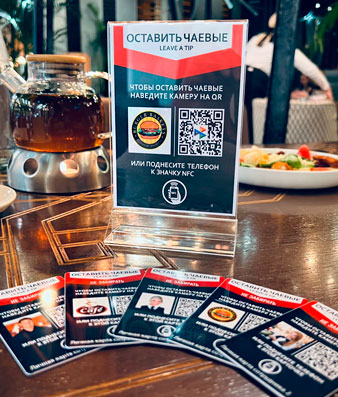 Если у вас нет возможности распечатать материалы самостоятельно, мы можем бесплатно изготовить электронные пластиковые визитки QR-кодом и бесконтактным NFC чипом с вашим фото или логотипом, наклейки, тейбл-тенты в нужном вам количестве. Доставка бесплатно в любой город РФ курьерской службой СДЭК. Смотрите ниже фото и видеопример. Срок изготовления 2-3 рабочих дня.